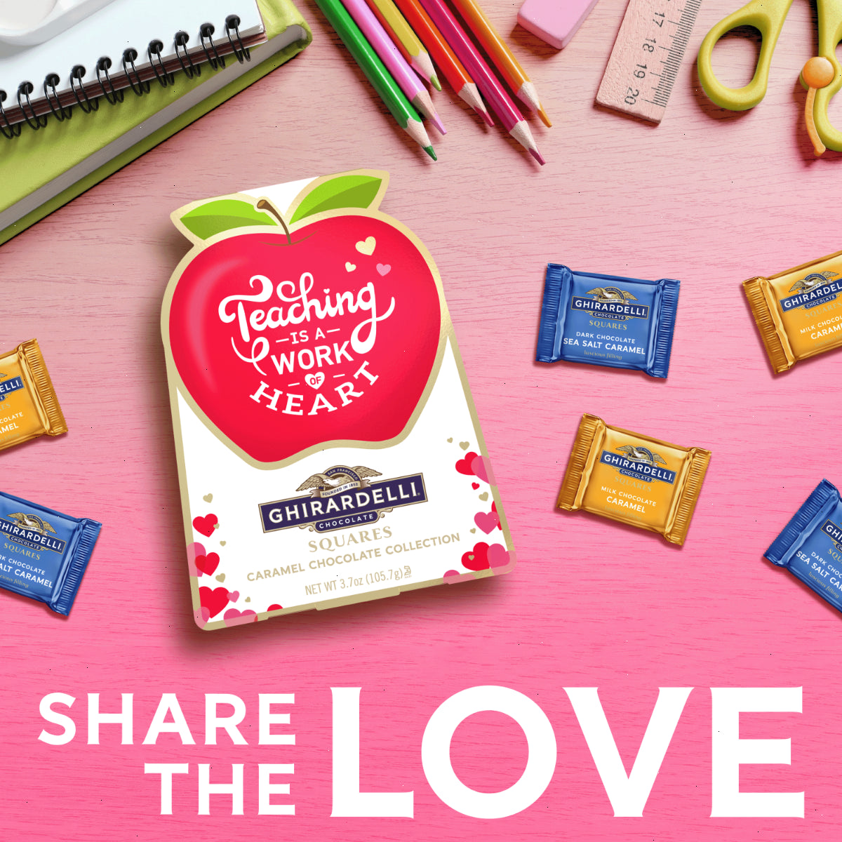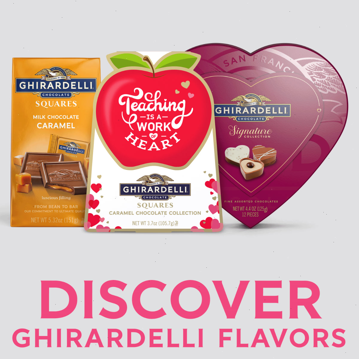 Surprise your teacher with rich, indulgent chocolate with GHIRARDELLI Chocolate Caramel SQUARES. These individually wrapped chocolate SQUARES make the perfect Valentine's Day gift. Each package includes two flavors: Milk Chocolate Caramel and Dark Chocolate Sea Salt Caramel, for delicious variety. Luscious caramel fills the rich chocolate for an indulgent treat. These individual treats are easy to enjoy. Premium ingredients, including high quality cocoa beans, are part of the GHIRARDELLI difference: a commitment to ultimate quality from Bean to Bar. GHIRARDELLI Makes Valentine's Day A BITE BETTER.