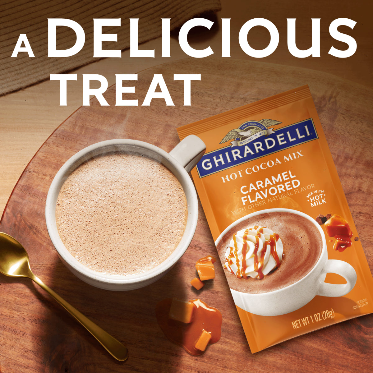 Enjoy GHIRARDELLI Caramel Flavored Hot Cocoa Mix, a delightful treat for cocoa lovers. This mix blends rich chocolate with sweet, buttery caramel notes. Perfect for cozying up with a warm mug any time of the year, it's an ideal way to elevate your daily routine. Use this mix to create indulgent hot cocoa or enhance your favorite desserts. GHIRARDELLI products are crafted with premium ingredients. GHIRARDELLI Makes Life A Bite Better.