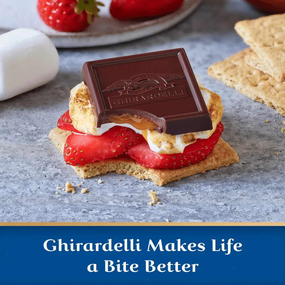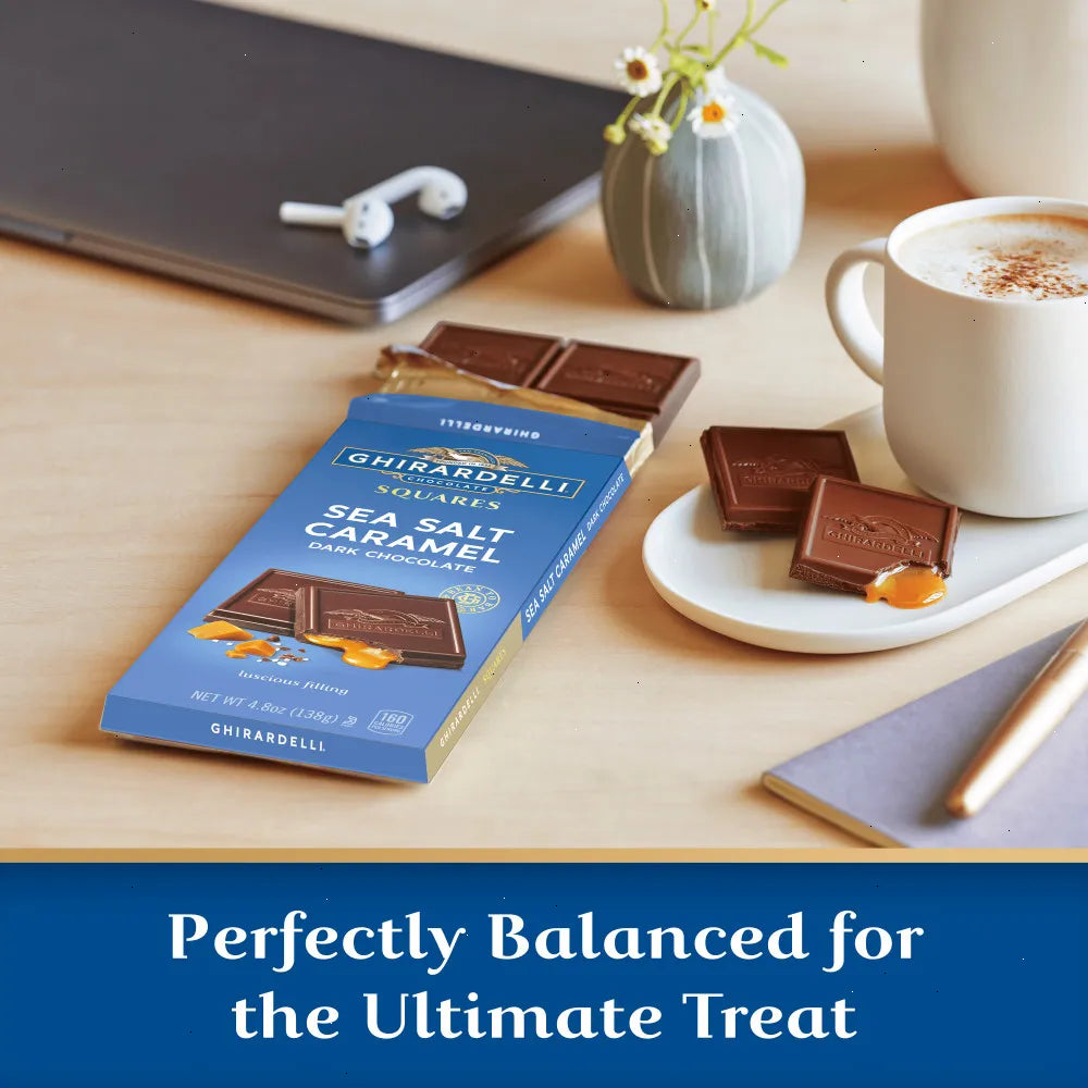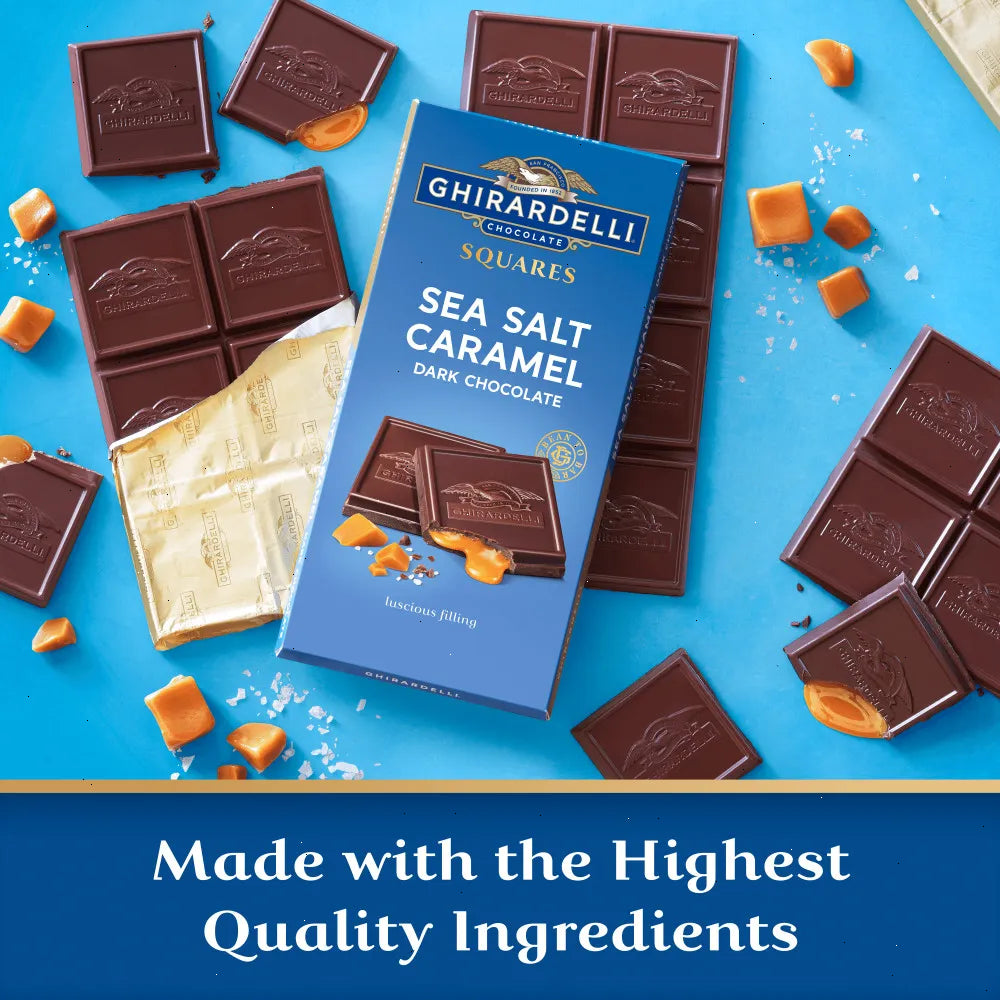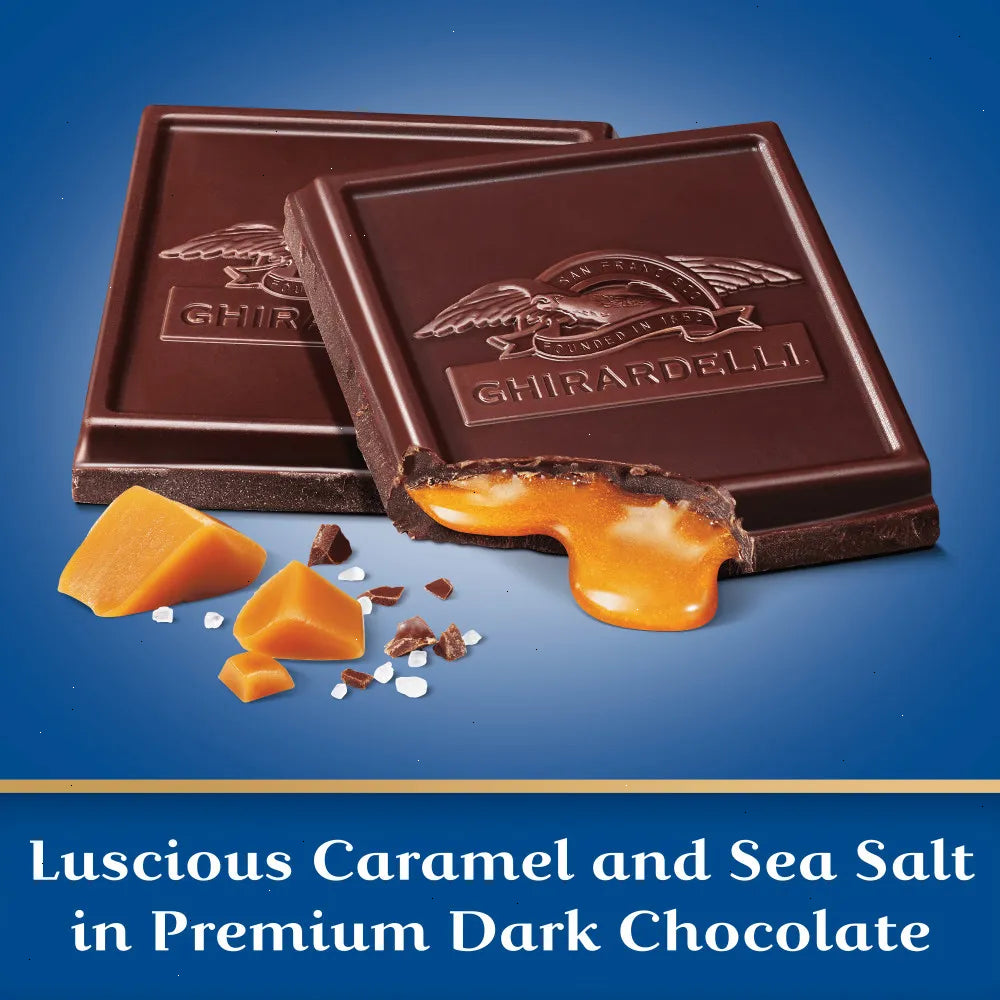 Experience the ultimate indulgence with a Ghirardelli Dark Chocolate Sea Salt Caramel Bar. This decadent treat features luscious caramel with a touch of sea salt surrounded by a rich, slow-melting dark chocolate coating. Perfectly balanced for a luxurious treat anytime, this case of ten 4.8 oz GHIRARDELLI Dark Chocolate Bars with Sea Salt Caramel Filling makes a great addition to any pantry. Enjoy this delicious dark chocolate bar alone or break it into squares to share with friends and family.