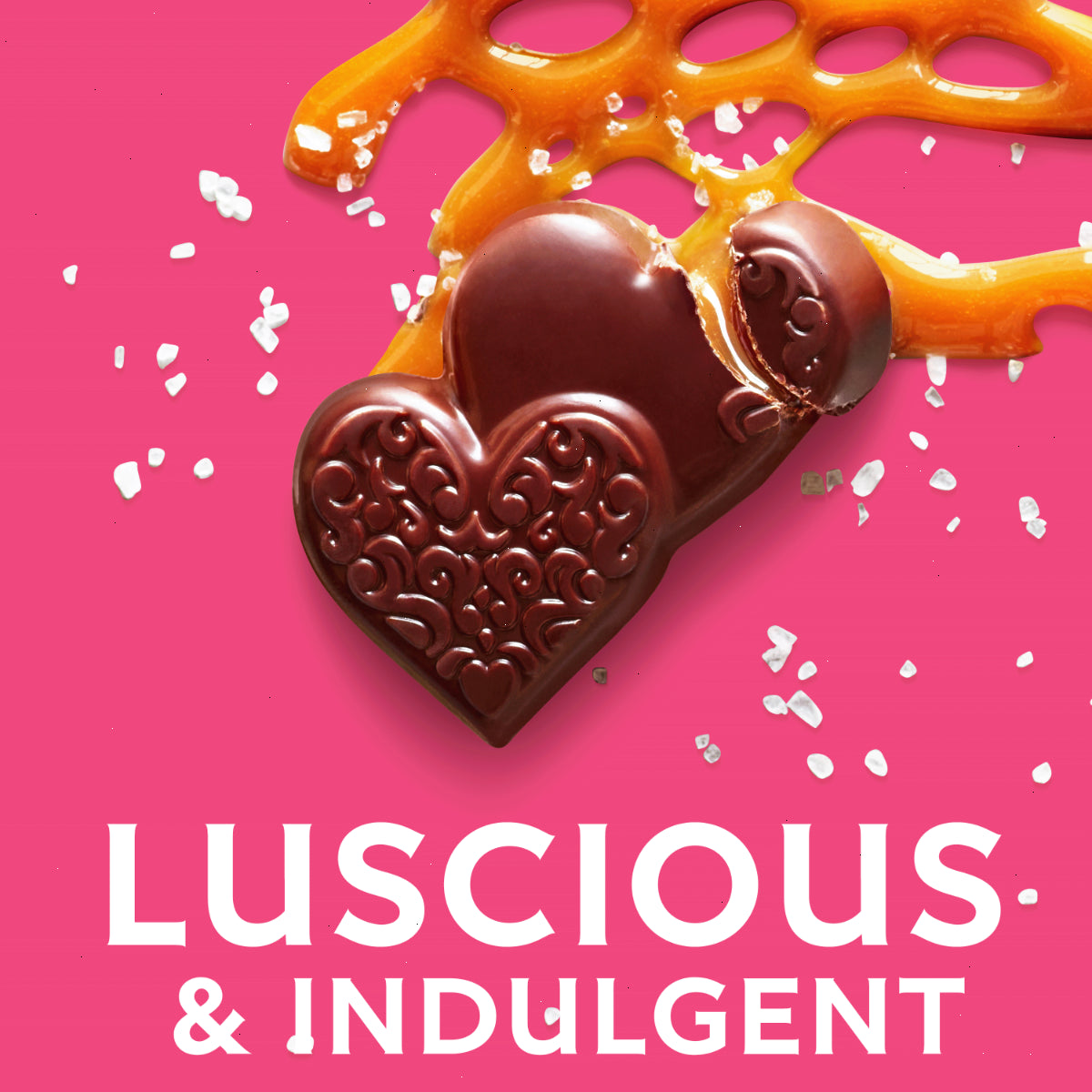 Rich dark chocolate sea salt caramel hearts with luscious caramel filling and a touch of sea salt