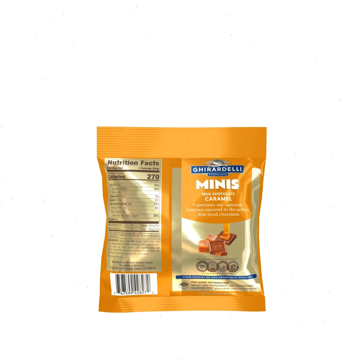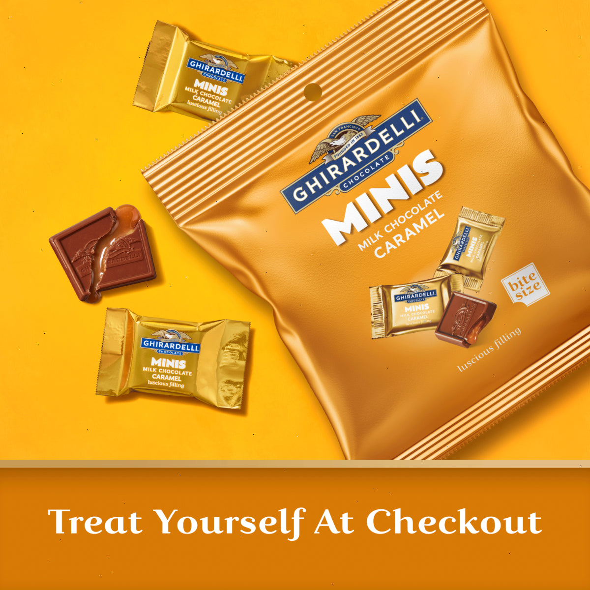 Experience our signature luscious caramel in the ideal bite-sized chocolate. Perfectly balanced for a delicious treat anytime, these milk chocolate minis add a sweet touch to your day for something special. Share a perfectly sized afternoon treat with a loved one. Luscious caramel fills the rich, indulgent milk chocolate for pure bliss in every mini. Premium ingredients, including high quality cocoa beans, are part of the GHIRARDELLI difference: a commitment to ultimate quality from Bean to Bar. GHIRARDELLI Makes Life a Bite Better. In addition to milk chocolate caramel, GHIRARDELLI chocolate minis are available in dark chocolate sea salt caramel and milk chocolate sea salt caramel.