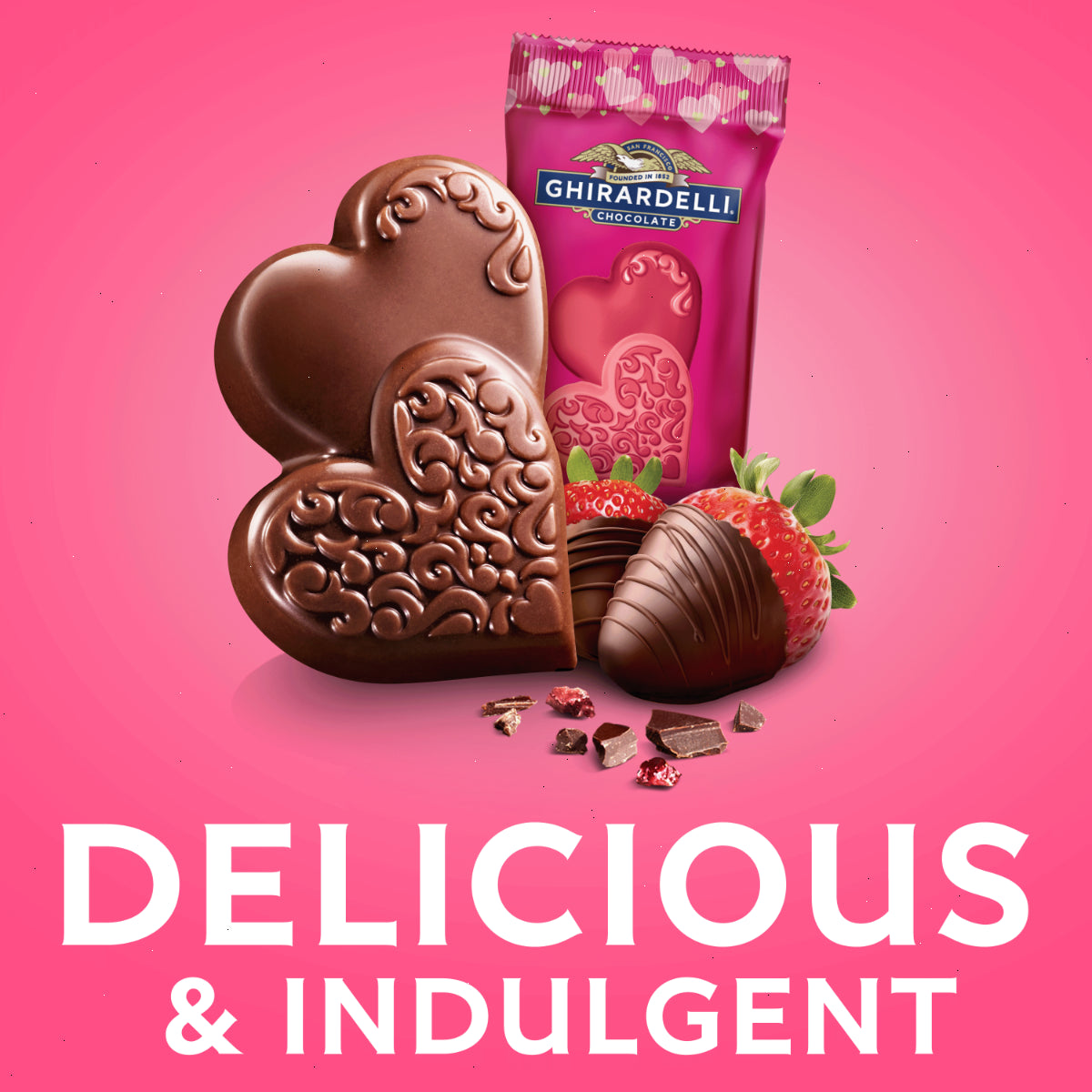 Surprise your sweetheart with rich, indulgent chocolate with GHIRARDELLI Chocolate Covered Strawberry Milk Chocolate Hearts. These individually wrapped chocolate hearts make the perfect Valentine's Day gift for friends and loved ones. Slip these hearts into valentines, or enjoy them on your own. Rich milk chocolate with crunchy strawberry flavored pieces for an indulgent treat. These individual treats are easy to enjoy. Premium ingredients, including high quality cocoa beans, are part of the GHIRARDELLI difference: a commitment to ultimate quality from Bean to Bar. GHIRARDELLI Makes Valentine's Day A BITE BETTER.