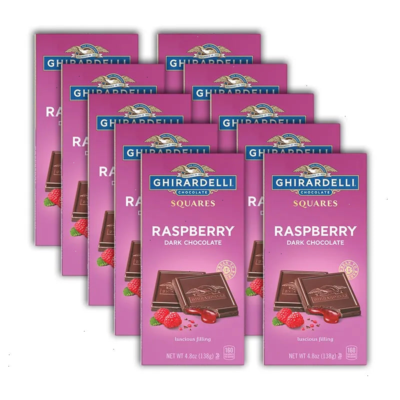 Give in to luscious indulgence with each bite of this GHIRARDELLI Dark Chocolate Bar with Raspberry Filling. You'll receive ten (10) 4.8oz bars, each made with the perfect balance of sweet, tart raspberry and dark chocolate for a satisfying treat. Perfect for sharing or portioning, these raspberry dark chocolate bars are made with high-quality cocoa beans and sure to please for any occasion.